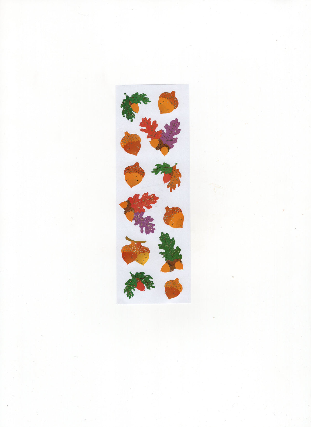 Last Call. Extremely small quantities available. These sheets are the very last of this Limited sticker. Fall Colored Acorns! Gold holo foil.
