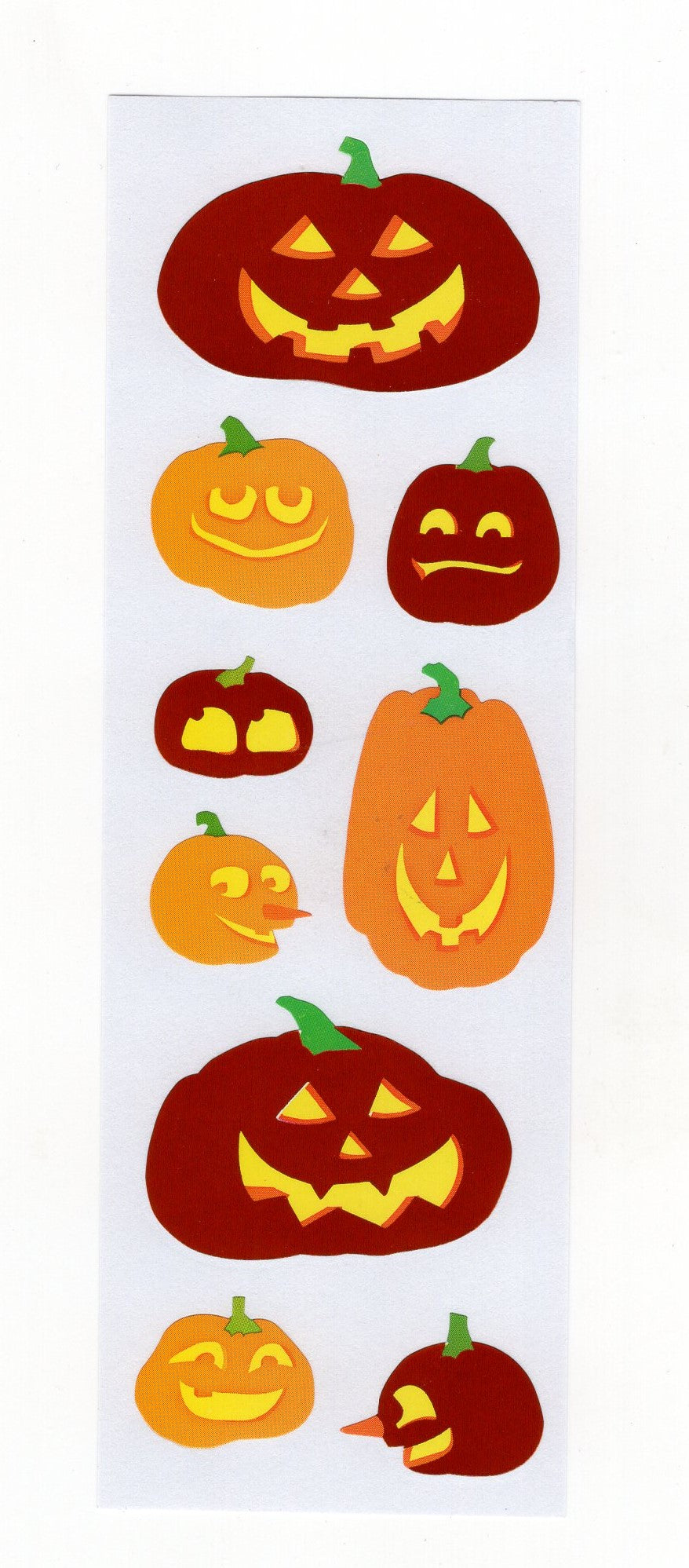 Last Call. Extremely small quantities available. These sheets are the very last of this Limited sticker. Silly Jack O Lanterns! Orange holo foil.