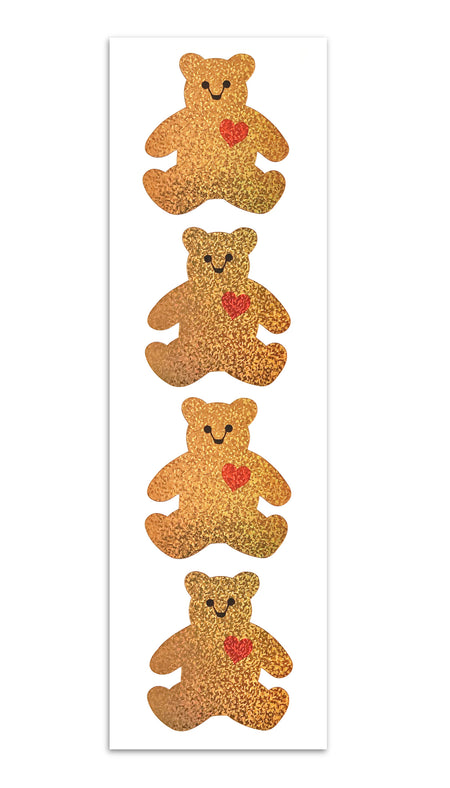Last Call. Extremely small quantities available. These sheets are the very last of this Limited sticker. Classic Favorites: Our iconic brown bear with a red heart all in sparkle.