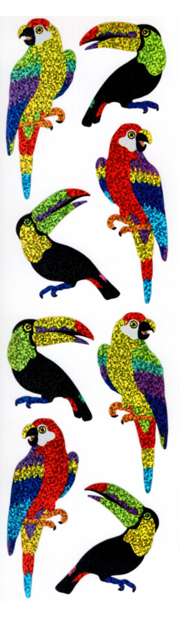 Take me to the tropics with these wonderful tucan's & parrots. Sparkly fun birds