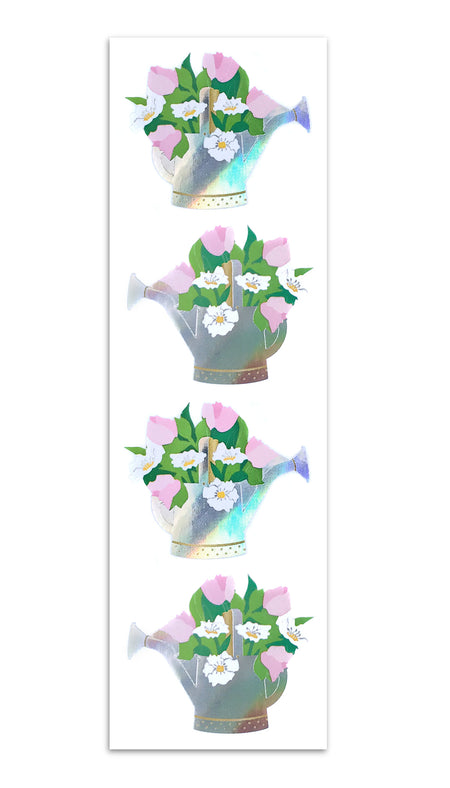 Last Call. Extremely small quantities available. These sheets are the very last of this Limited sticker. Classic Favorites: Pink and white flowers top silver halo foiled watering can stickers. Vintage design.